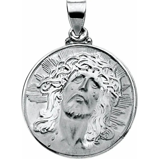 Face of Jesus Medal (Ecco Homo) Hollow 3 Sizes in 14K White or Yellow Gold