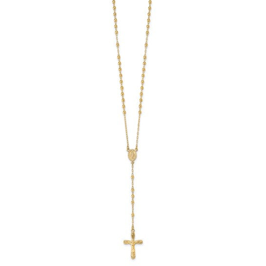 One of our newest rosaries, this beautiful rosary necklace features a Miraculous Medal Center, highly polished 3mm beads, and a modern crucifix. A great length to wear with most outfits.
