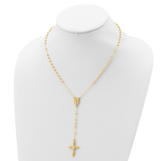 Rosary Necklace 18" with Miraculous Center Sterling Silver or Yellow Gold Plated